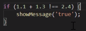 Program Flow If ... else statements truthy and falsy expressions comparing === to == The Ternary Operator Block Scope Loops: for, while, do...while Conditionals Using if() ===: equal !==: not equal Truthy and Falsy Falsy Truthy false 0 "" or '' (empty strings_ null undefined NaN Everything NOT falsy 0.5 "0" String *floating point bug in JS use parenthesis, toFixed(...), and string to number to fix this bug h.. Study/Coding 2020.02.12