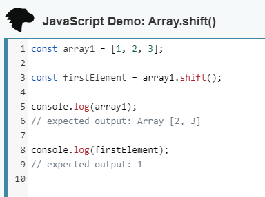 Removes the element from the beginning of the array