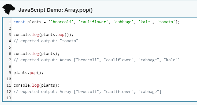 Removes the element from the end of the array.