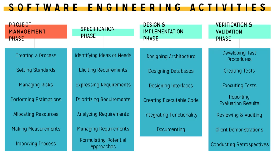 A process organizes the work on the product into distinct phases. In general, the work that is undertaken for a project will transition from one phase to the next. Each phase has specific activities and tasks that must be performed.