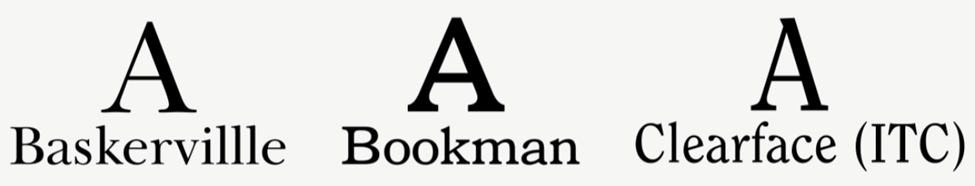 Baskerville, bookman, clearface (ITC)